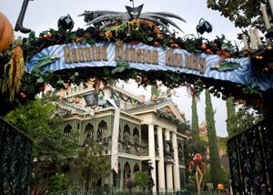 Only this ghost isn’t of the grim, grinning sort, as described in the attraction’s popular song. This ghost is all bones and menace, with a foreboding cape and a sword flailing wildly.